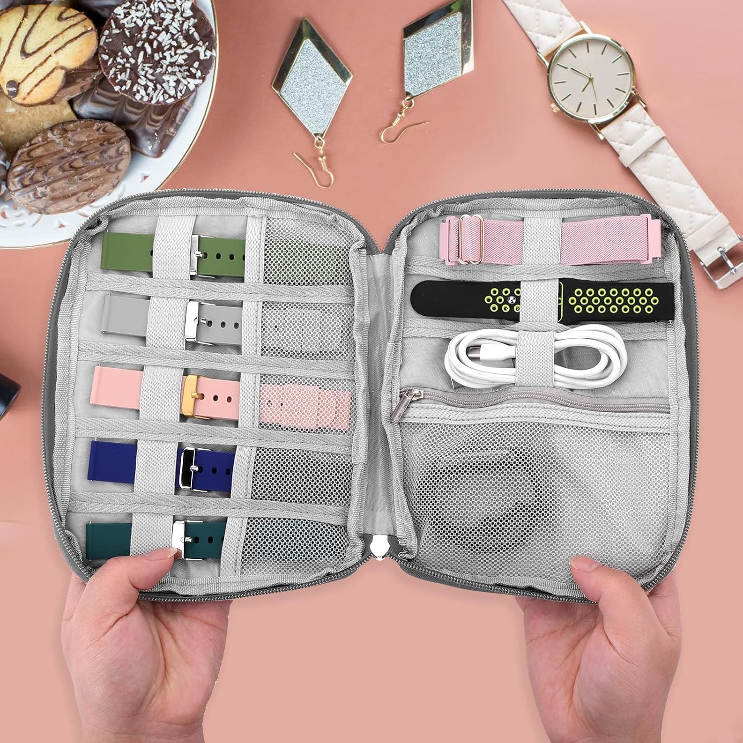 Watch Band Organizer,Travel Watch Organizer, Compact Watch Band Case for Travel, Watch Holder with Multiple Slots, Grey Watch Band Organizer for Men and Women